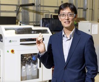 Researchers at the Department of Energy’s Oak Ridge National Laboratory designed a novel polymer to bind and strengthen silica sand for binder jet additive manufacturing, a 3D-printing method used by industries for prototyping and part production. The printable polymer enables sand structures with intricate geometries and exceptional strength – and is also water soluble. |